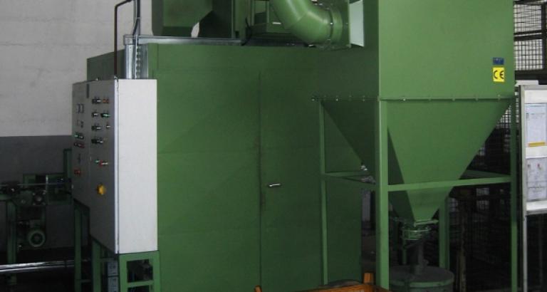 Shot blasting machine type PL is used for shot blasting of flat steels of different dimensions and length. It is suitable for medium capacity. Blasting machine is equipped with a horizontal manipulator for automated handling of flat steel to shot blasting machine and then on conoid rollers through shot blasting machine. Flat steel is loaded to a loading device. Vertical conveyor is adding flat steel on roller conveyor automatically, pressing wheel is pressing flat steel on the rollers.