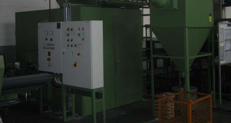 After shotblasting they are automatically unloaded from roller conveyor. Width of guiding beam on roller conveyor can be changed according to a width of flat steels. In shot blasting machine are two change-over flaps from wear-resistant steel, which direct jet to working pieces, in way that the throwing wheel energy is maximal used.